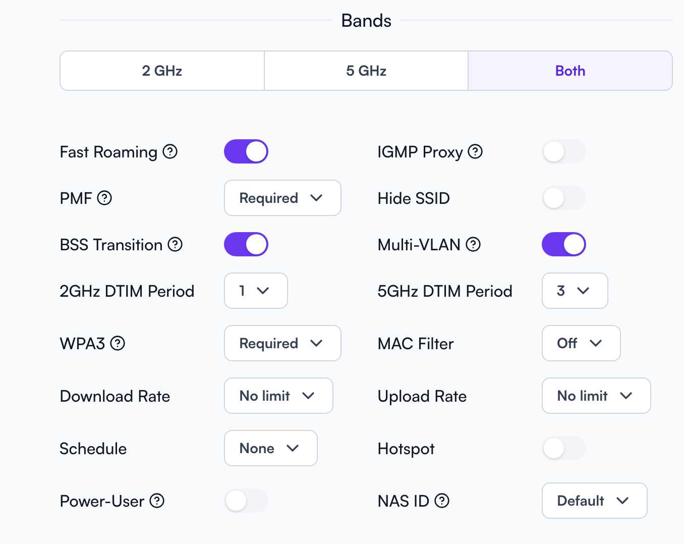 For WPA3-only mode: set both WPA3 and PMF to required (there is no other valid option for WPA3 only).