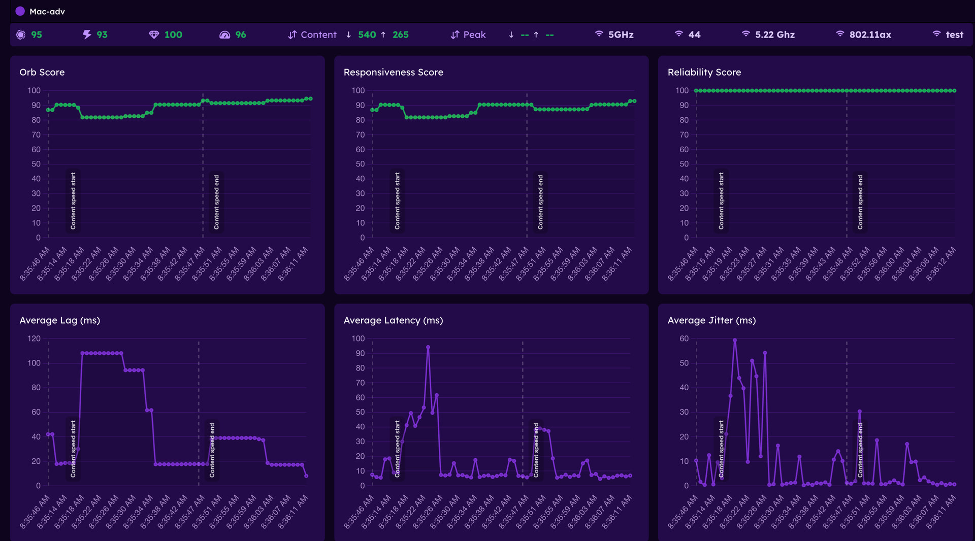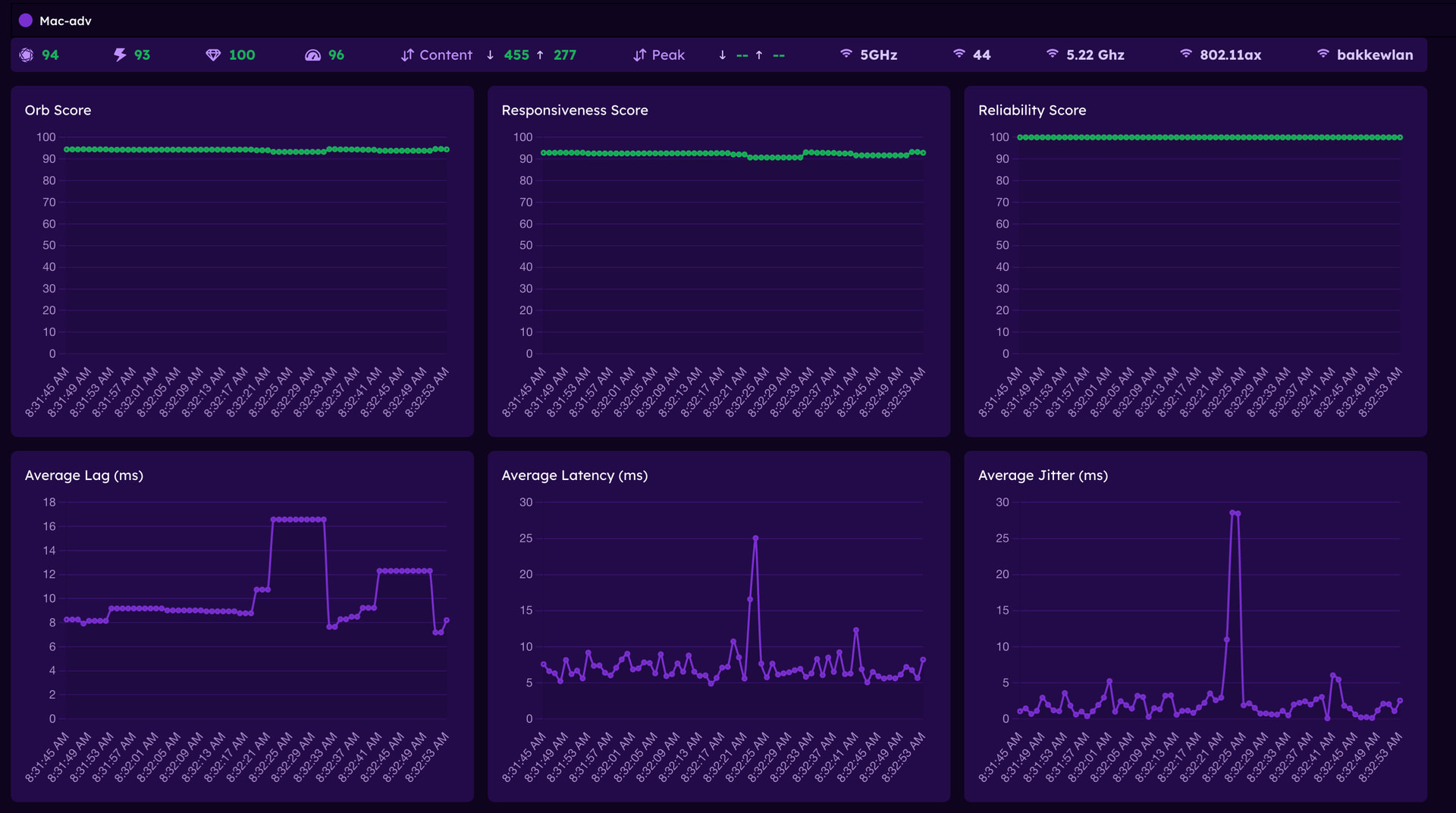 I have a couple of AP6’ running in my environment along with Orb running on an M1 MacBook, so here’s a quick snapshot of some statistics Orb recorded over an hour: