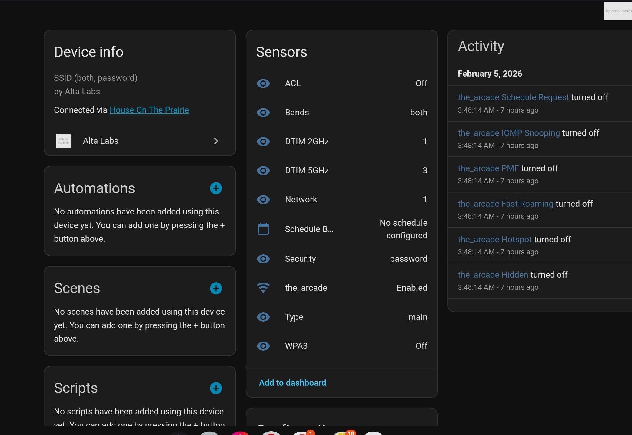 - Home Security Integration: Tie SSID availability or bandwidth rules to alarm state or presence detection.