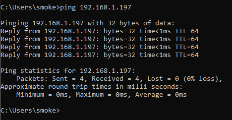 Here is another ping test from a client on the 192.168.1.X/24 subnet: