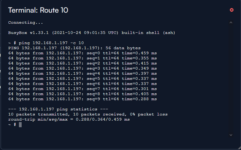 The ping from the Route10 itself will not apply to the rule since it comes from the GW itself.