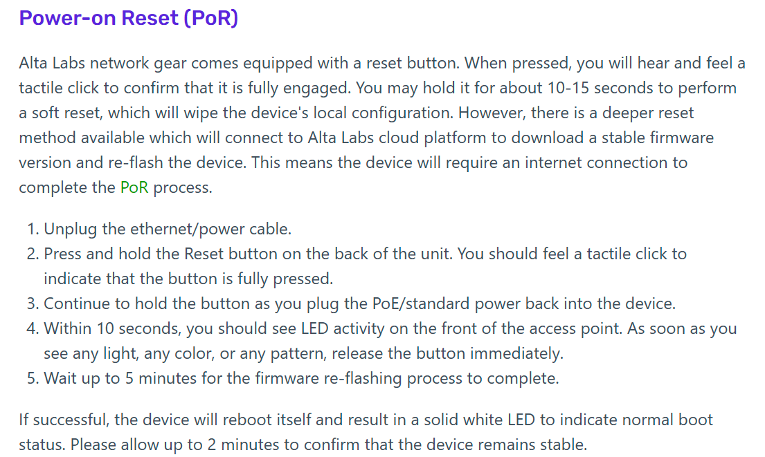 My ISP decided it would be fun to jerk me around and mess with my static IP. This completely hosed my network as my Route10 was now impossible to push changes to via the cloud controller. What are the proper steps to get things working again, I need to push changes to one of the interfaces to update the static IP info. I am now operating off a different gateway just to get me internet access again. I have held the reset button down and now the light is white but I dont see how I am supposed to get these changes to the device as it no longer can reach the internet. Thanks!