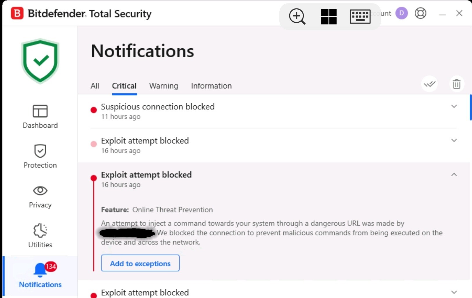 Im asking if there is an alert notifying of the block action being taken. This is the only type of alert Ive ever received from the device and it doesnt indicate anything other than there is an attack happening.