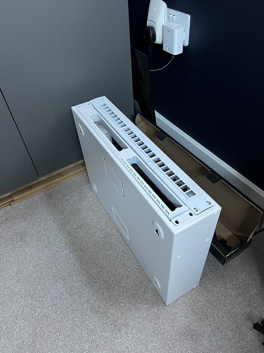 I did think of this initially but the network cables and some power lines run behind that wall, I also didn’t think I had the equipment to justify a rack unit, but I can see how it would look nicer, as long as it doesn’t restrict access to the consumer unit then it could be nice!