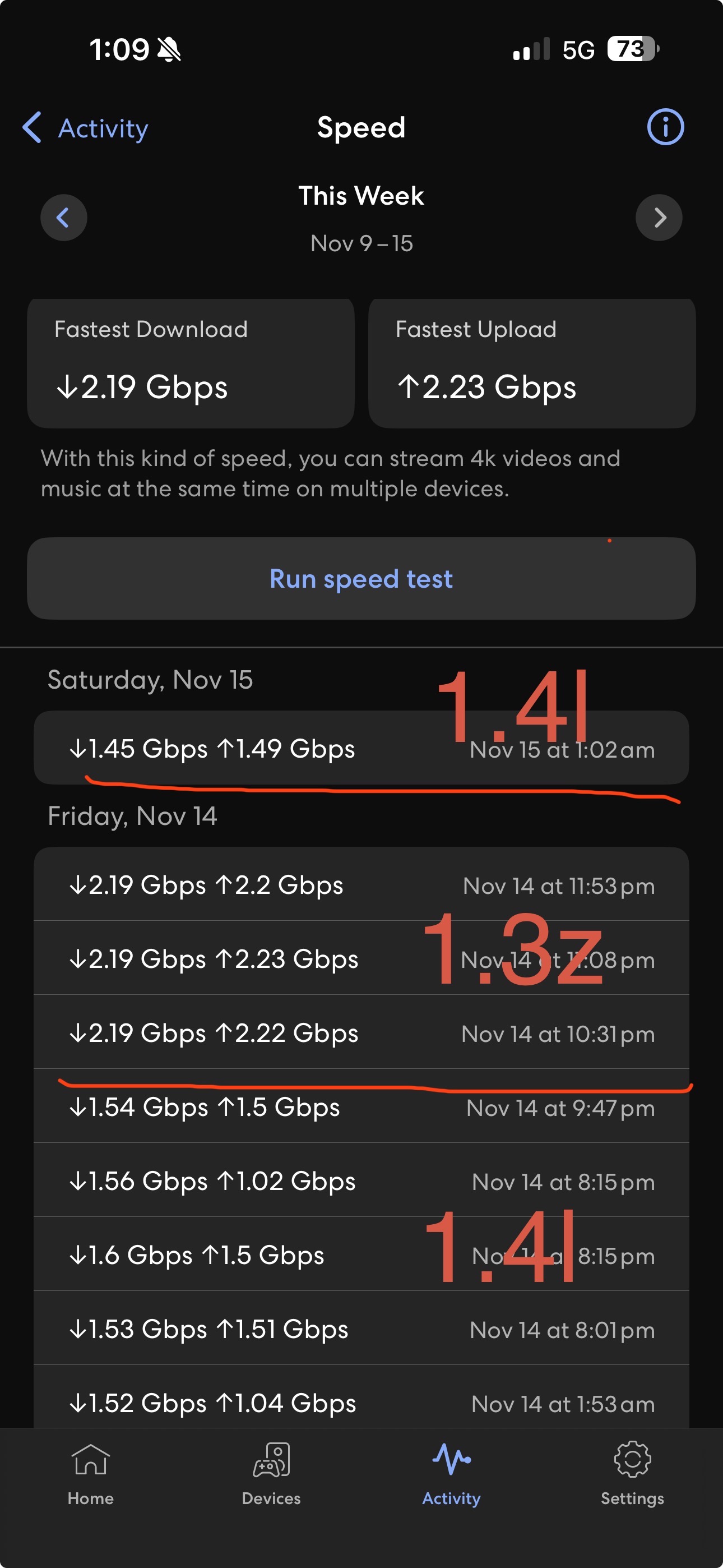 The max of 1.5Gbit, Its definitely related to this firmware. I did a factory reset which took me back to 1.3z and there were no perf issues. Its like something is artificially capping it at 1.5Gbit.