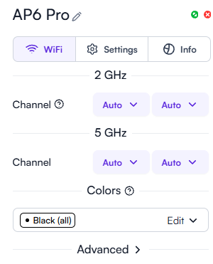 As you can see in the picture above, I excluded channel 136 and set the bandwidth in the 5Ghz band to 80 MHz. All of my access point settings are configured to “Auto,” as shown in the picture below: