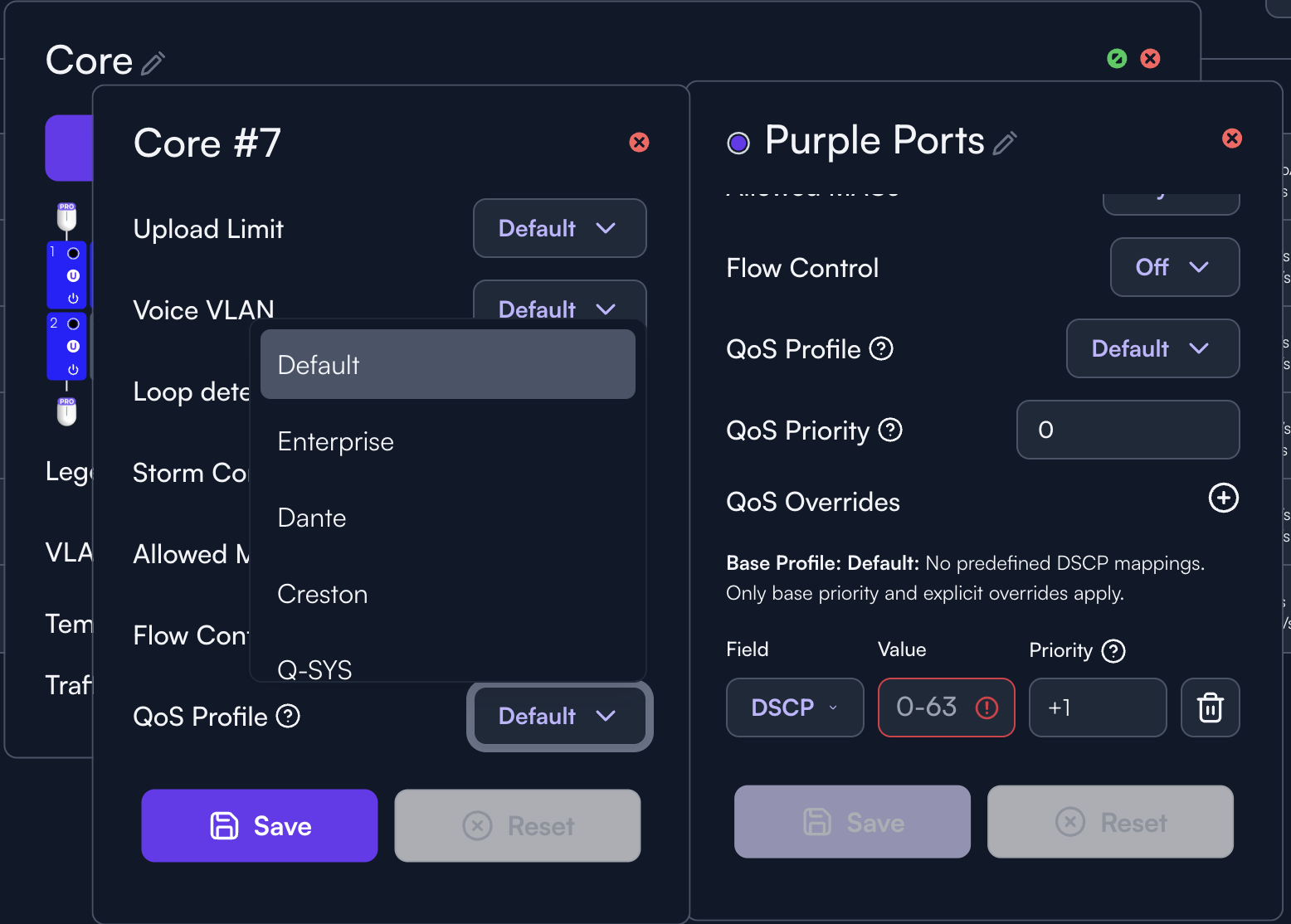 To use QoS prioritization on Alta Switches, look towards the very end of each Port or Port Colors’ options