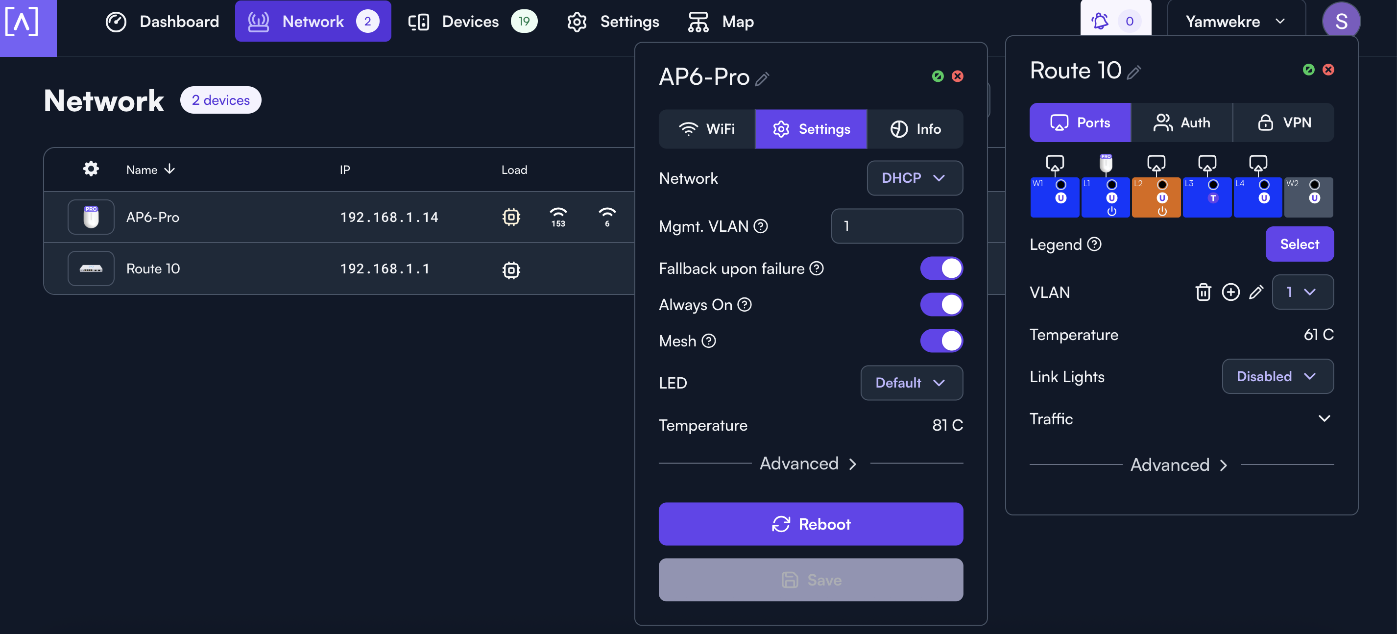 Wow, 100°C! I wanted to put the router on an heatsink, but with the configuration, I had to mount it on the wall using the access point. I’ll keep using it. Also, I received the alert more than three times that my devices were no longer detected. Maybe it was because of the temperature that it shut down. For a moment, I thought it might be a power outage or a loss of connection from my ISP.