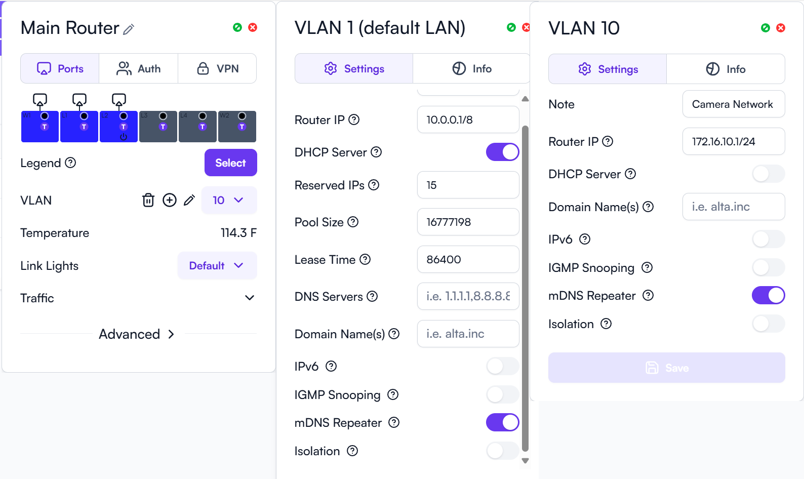 Vlan 10 - Camera Network - 172.16.10.0/24