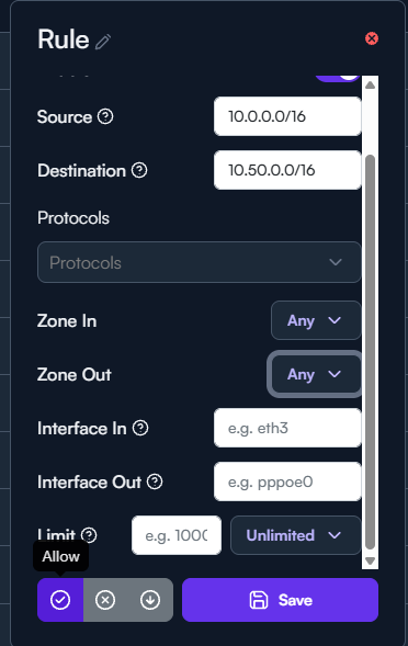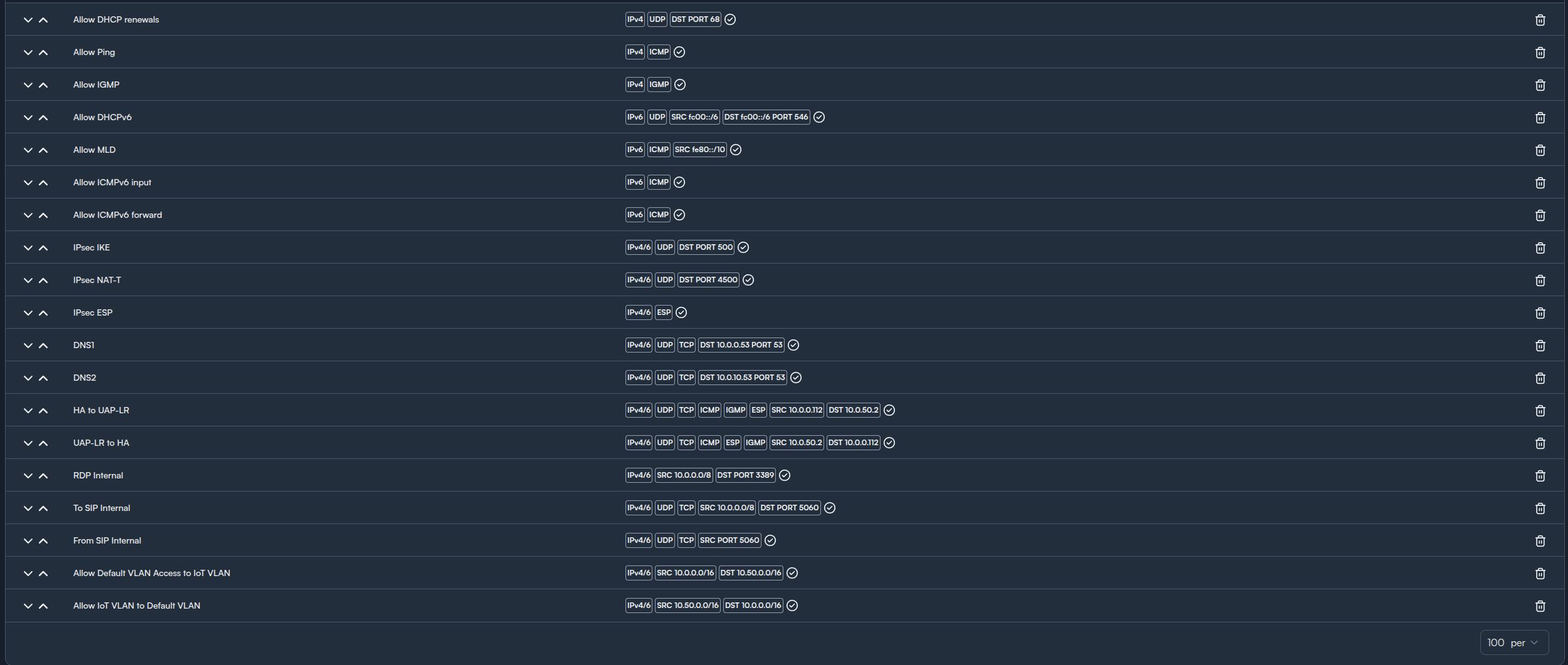 I’d like the devices on default vlan (10.0.0.0/16) to be able to access Vlan 50 (10.50.0.0/16) but not 15 (10.15.0.0/16). Ideally neither of the two VLANs should be able to access 10.0.0.0/16, but I’ll run into issues with accessing IoT devices in that case I think, so I just have 15 marked as isolated.