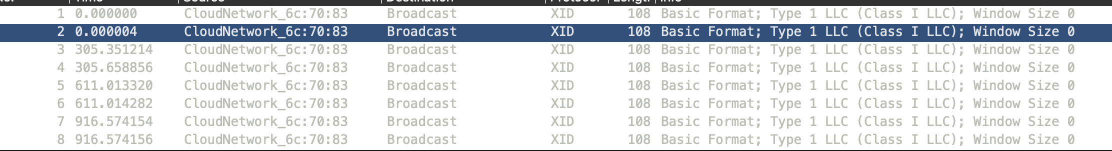 I’ve also done a Wireshark Scan for that Mac Address all i see are broadcast packets for that MAC